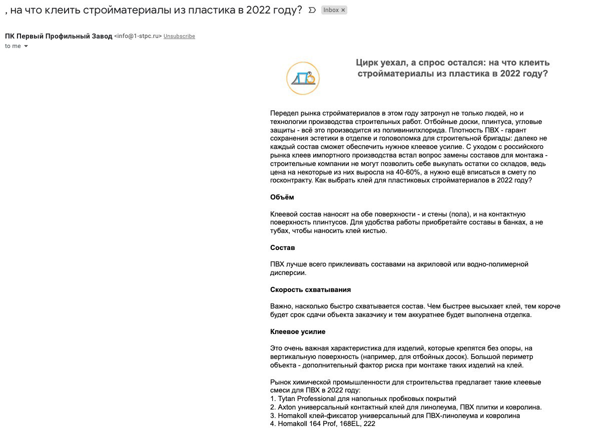 я не знаю каким образом я оказался подписан на рассылку промышленного клея, но тем не менее даже ее затронули санкции против РФ