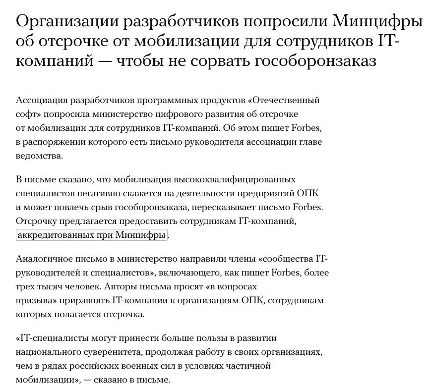 нет, ты только посмотри на этих айтишников! ниче их не берет! коронавирус -- работают дома. инфляция -- повышают зарплаты. война -- отсрочка! прям как заговоренный класс какойто, словно члены духовенства!