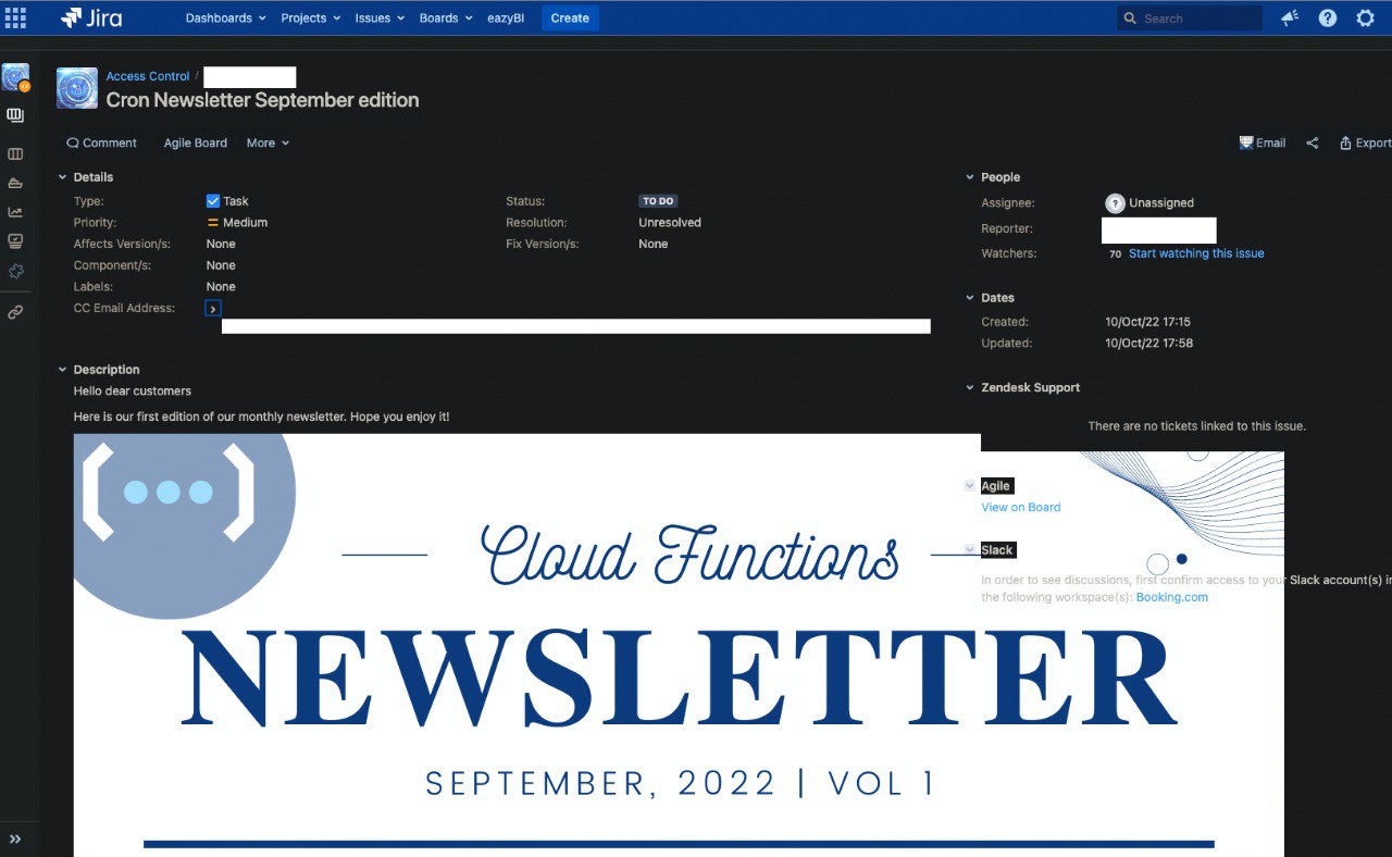новая корпоративная мода: нюслетер 1ой картинкой в боди джира тикета! да, за 10 лет я такого не видел еще, браво!