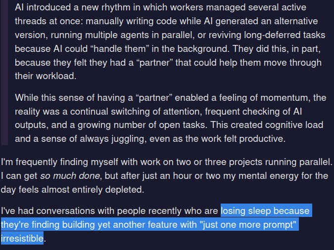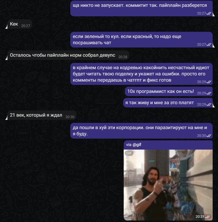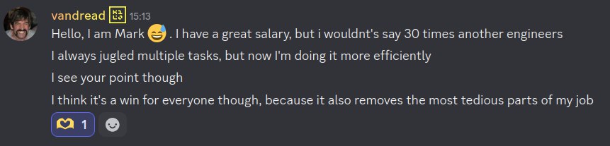 Единственный вопрос: получает ли Марк зарплату 5 человек, работающих 6 месяцев, за один месяц, который он потратил на этот проект? Сомневаюсь. Так кто же на самом деле выигрывает от этой «кило скорости»? Пока что это звучит так: платишь одному сотруднику и получаешь результат 5ти, что есть потрясающее предложение, если вы выплачиваете ту зарплату. Но для тех, кто находится на принимающей стороне этой сделки, это звучит как спидран выгорания any%, если базовым ожиданием станет необходимость постоянно жонглировать 5 задачами параллельно, чтобы просто выжить.