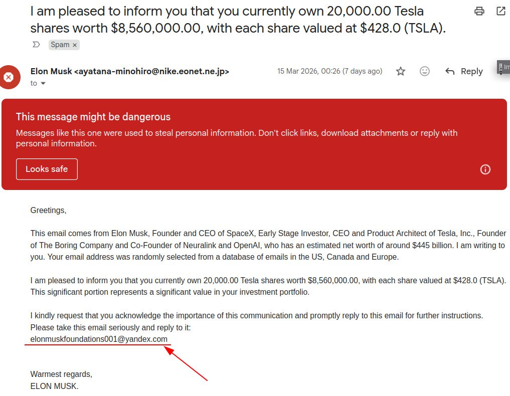 мой любимый жанр почты! на этот раз от самого илона который таки завел почту на яндексе! видимо баффет прошлонедельный не сыграл. жду безоса или трампа в своем инбоксе на сл неделе...